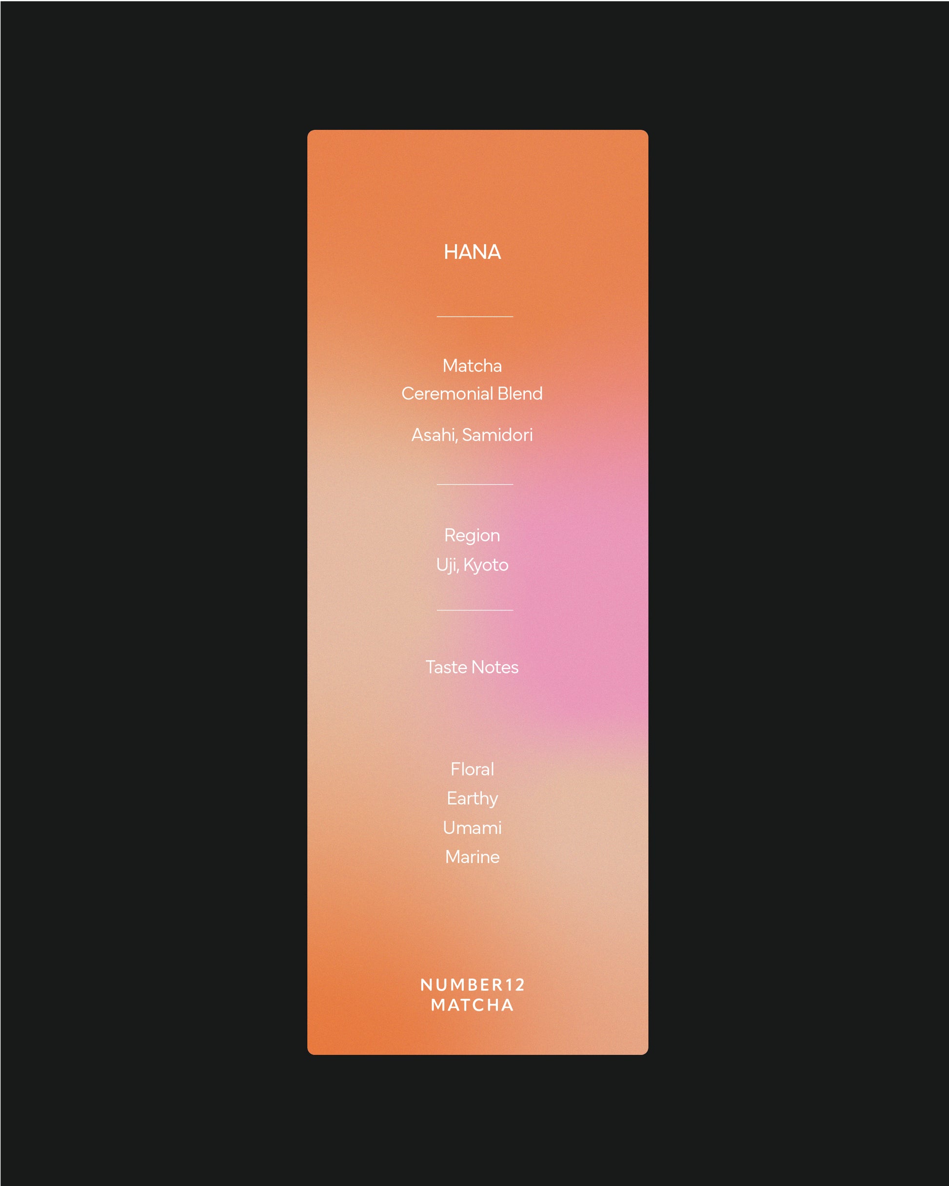 HARU proudly presents a truly exquisite Ceremonial Grade Matcha, meticulously blended from the esteemed cultivars Asahi and Saemidori, and guaranteed to be 100% hand-picked from the renowned tea fields of Uji, Kyoto. This blend delivers an authentic Uji-Cha experience, boasting a powerful surge of Umami derived from the Asahi cultivar, which is nurtured in a geographically select location and sustained by specialized fertilizers to enhance both its depth of Umami and its vibrant green colour. You will discover a complex palate marked by notes of Floral, intense Umami, a Fresh Marine quality, and a grounding Earthy finish—a testament to traditional taste cultivated with the utmost care from the farm.